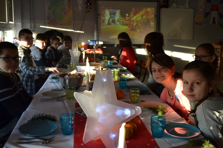W ramach klasowych spotkań wigilijnych realizowano różne pomysły. Klasa 3a przygotowała swoją wieczerzę w świetlicy w Trzebani, a 3c w Schronisku Młodzieżowym w Śmiglu.